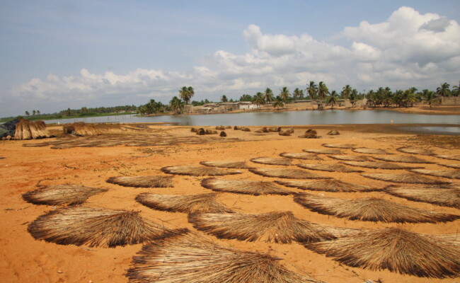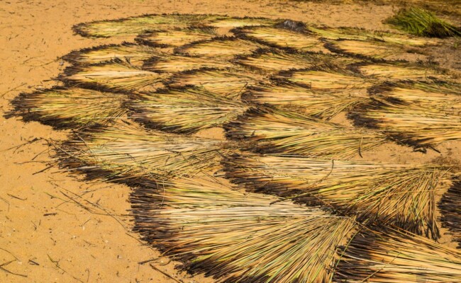 - Séchage du jonc : les bottes de joncs sont disposées en éventails par les femmes sur la plage ou dans des zones à fortes insolations pour sécher pendant environ 14 jours