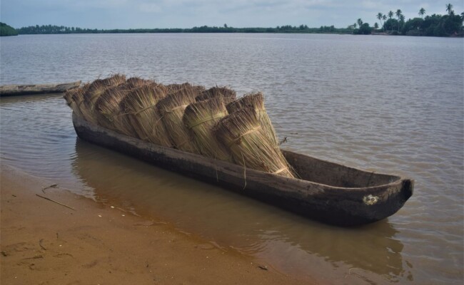 - Transport des bottes : les bottes sont transportées par pirogue des zones de fauchages vers le village par les hommes ou les femmes
